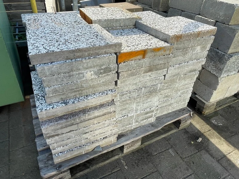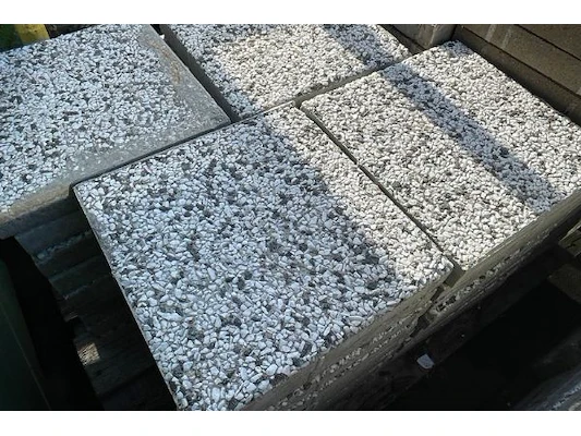 : 90 stuks van 35 x 35 x 5 cm hoog, 7 stuks van 40 x 40 x 5 cm hoog, 30 stuks diverse resten