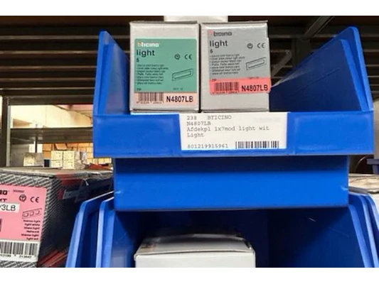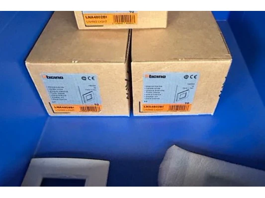 Ongeveer 60 doosjes afdekbare plaatjes Btcino waaronder N4803LB, LNA4802BI, N48020B, ...