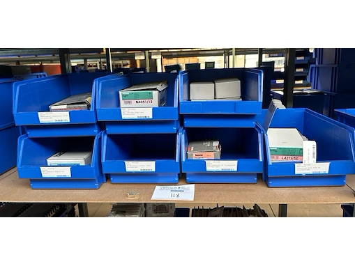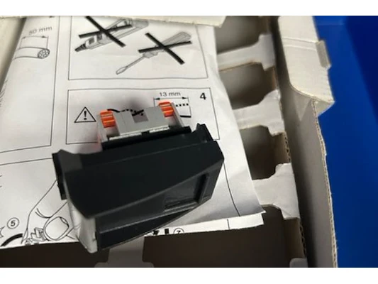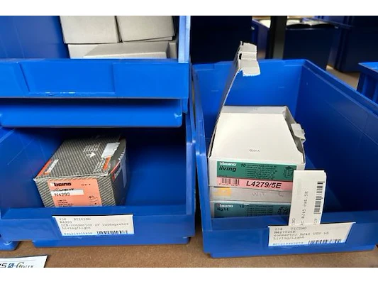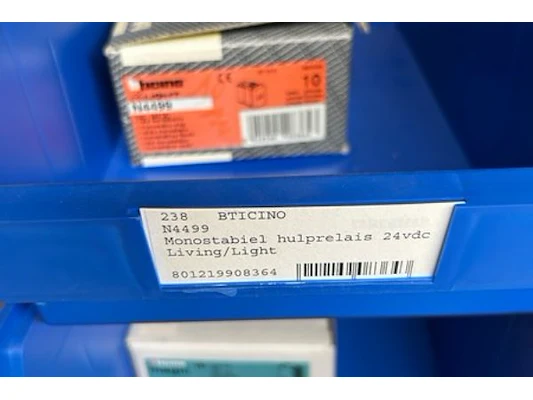12 doosjes electriciteitstoebehoren Btcino waaronder bel, monostabiel hulprelais, dim-connector, ...