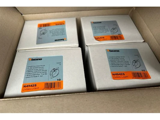 3 dozen met afdekplaat stopcontact Btcino 15W35 10, N49425, + resten: afdekplaten, lampen, ...