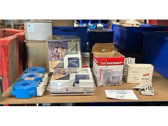 Lot electriciteitstoebehoren waaronder 2 foto-electrische sensoren, bewegingsmelder, arrester, ...