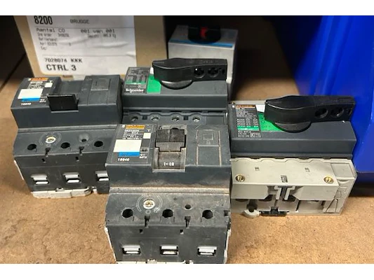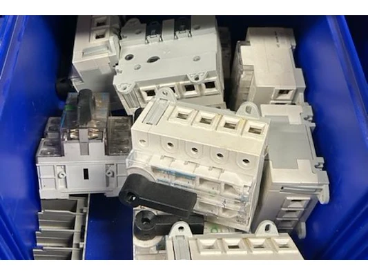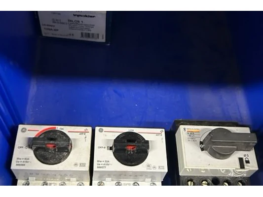 Ongeveer 18 diverse draaischakelaars waaronder multi 9 NG125N, interpact INS80, Sirco VM1, 63A, ...