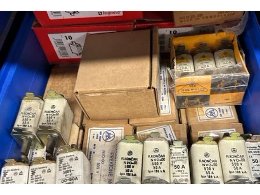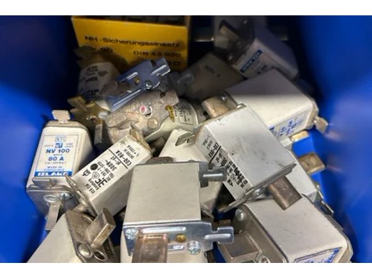 15 bakken met mussing zekeringen waaronder 25A, 32A, 50A, 63A, 80A, 100A, ...