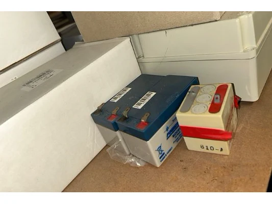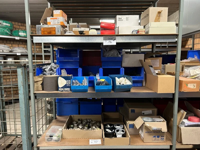 Ongeveer 23 dozen electriciteitstoebehoren waaronder stroomvoorzieningseenheid Bosch, lampfittings, ...