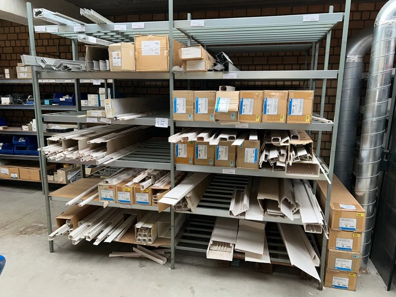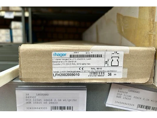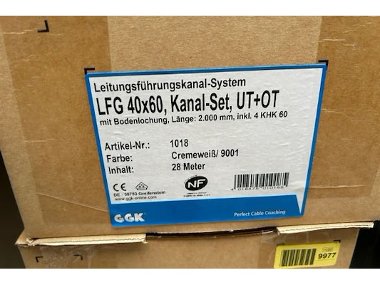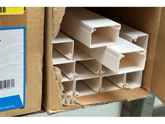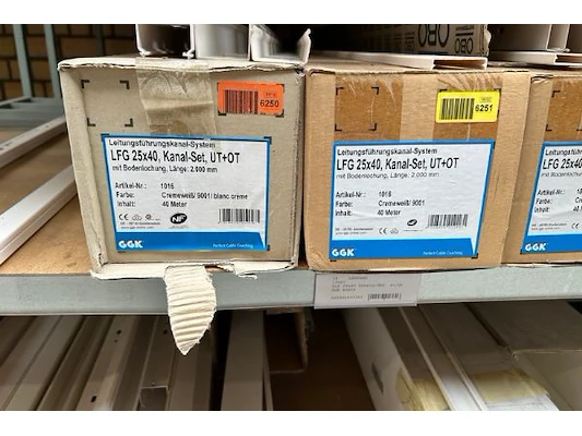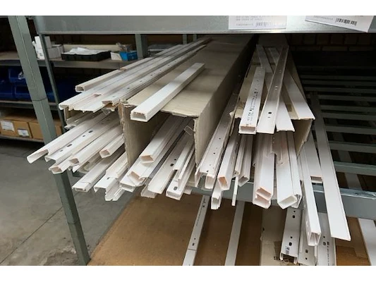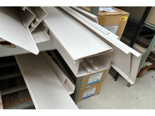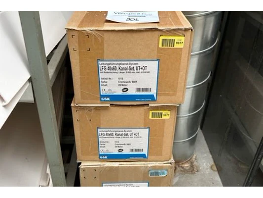 27 dozen met diverse kabelgoten, diverse maten zoals 20 x 20, 40 x 60, 80 x 60, ongeveer 28m/doos