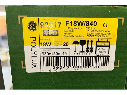 24 dozen met TL lampen polylux T8, 26 mm diameter x 600 mm ongeveer 25 stuks/doos, 18W