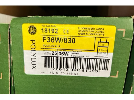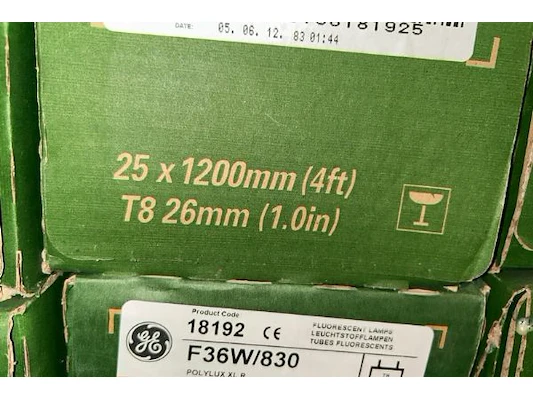 21 dozen TL lampen polylux, T8, 1200 mm x 26 mm diameter, 36W, ongeveer 25 stuks/doos