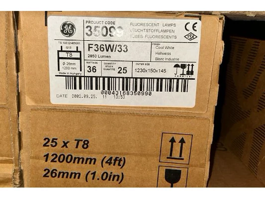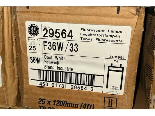 20 dozen TL lampen, T8, 1200 mm x 26 mm diameter, 36W, ongeveer 25 stuks/doos