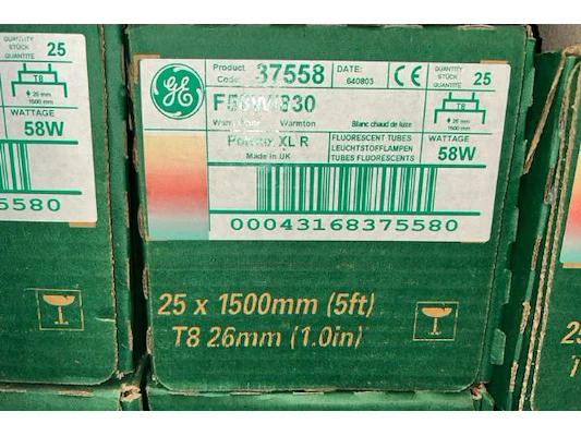 14 TL lampen T8, 1500mm x 26 mm diameter, 58W ongeveer 25 stuks/doos
