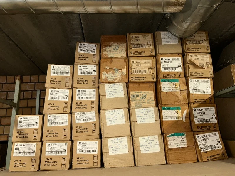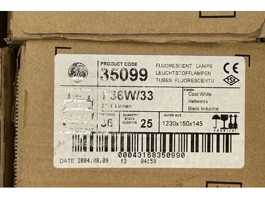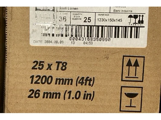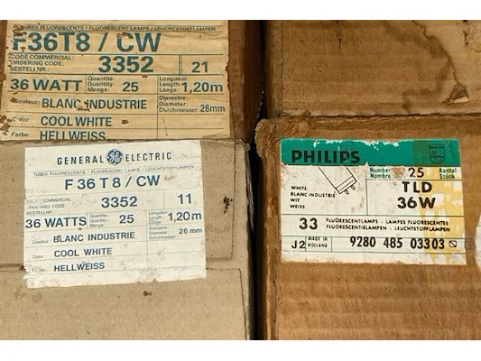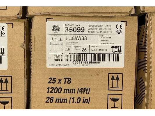31 dozen met TL lampen, 36W, T8, 26 mm diameter, 1200 mm, ongeveer 25 stuks/doos