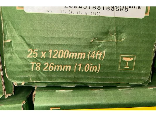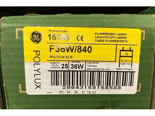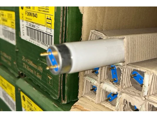 24 dozen met TL lampen, 36W, T8, 26 mm diameter, 1200 mm, ongeveer 25 stuks/doos