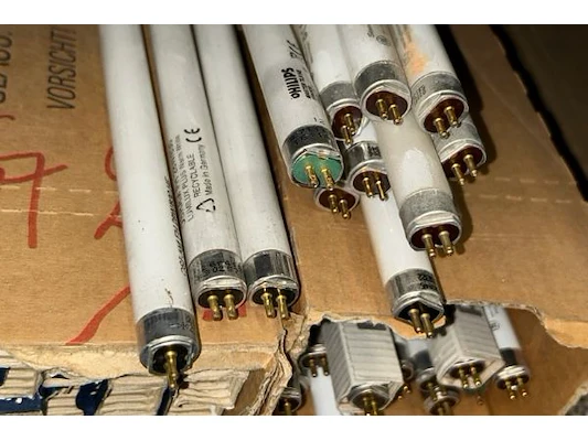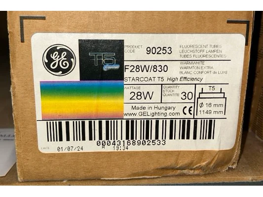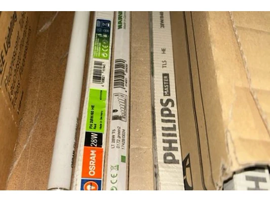 6 dozen TL lampen waaronder 28W T5, 16 mm diameter x 1149 mm, 24W/840 HO, ongeveer 20 stuks/doos
