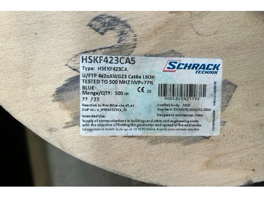 Ongeveer 100m kabel op rol U/FTP 4 x 2 x AWG23 cat 6a LSOH