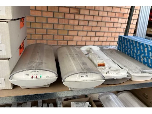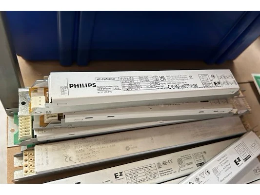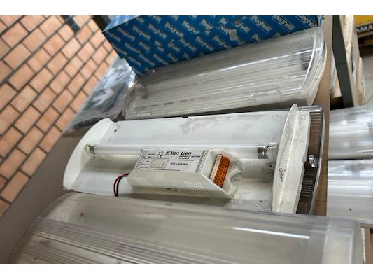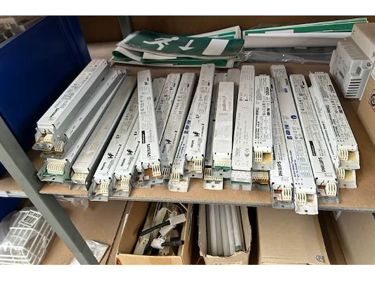 Waaronder noodverlichting, ballasten, bordjes, TL lampen
