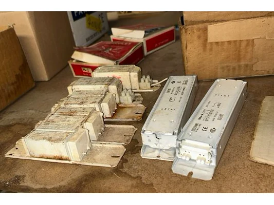 Waaronder onderdelen armatruren TL, ballasten, ...