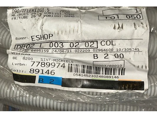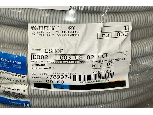 10x voorbedrade buis Preflex, H07V-U (VO) P/ST 25 mm diameter x ongeveer 50m, excl kooi