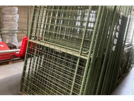 4 metalen kooien, opplooibaar, 1 kant kan open, leeg, ongeveer 126 x 100 x 184.5 cm hoog, zit ook in lot 8007
