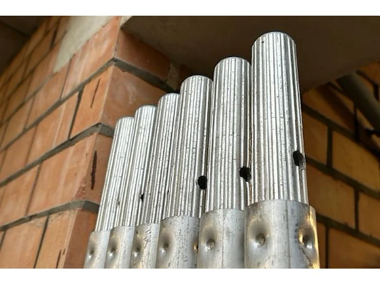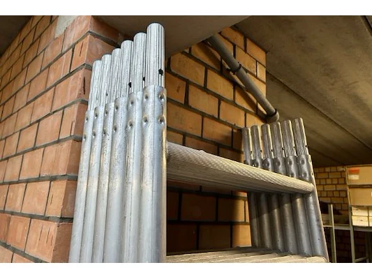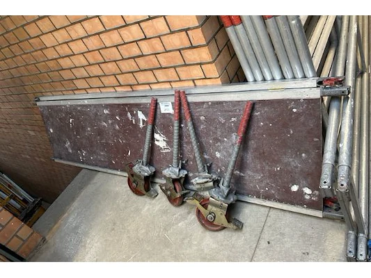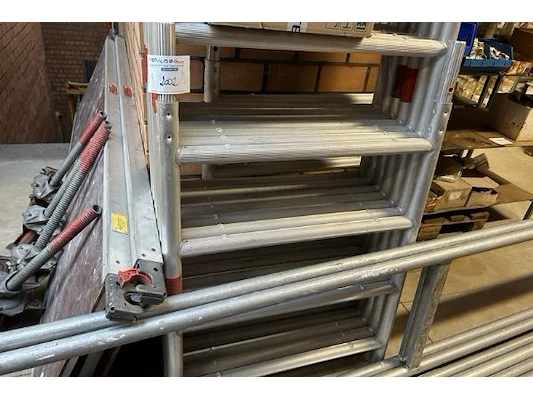 : bestaande uit 6 opbouwframes H 2 m Br 80 cm / 2 opbouwframes H 1 m Br 80 cm / 2 leuningen L 294 cm x ...