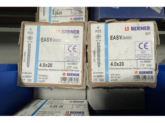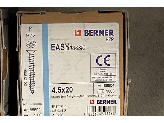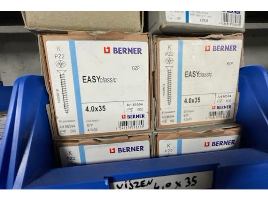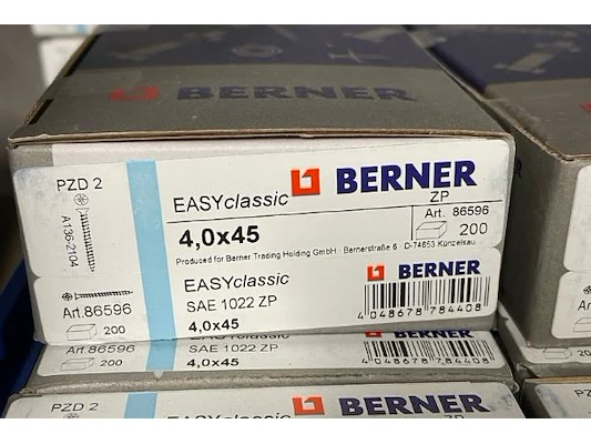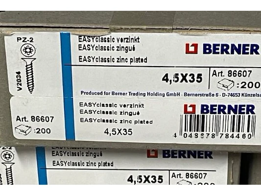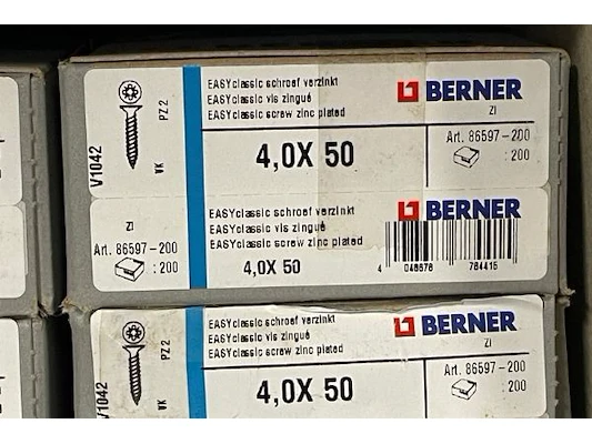 Ongeveer 60 doosjes diverse schroeven Berner, diverse maten waaronder 4.0 x 50, 4.5 x 20, 4.0 x 45, ...
