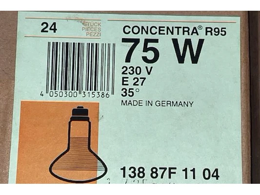 Ongeveer 250 lampen, waaronder 100/75W