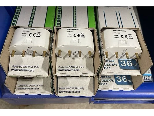 Ongeveer 60 diverse PL-L, waaronder 24W/18W, diverse lampen en toebehoren