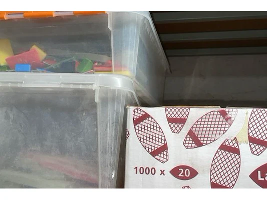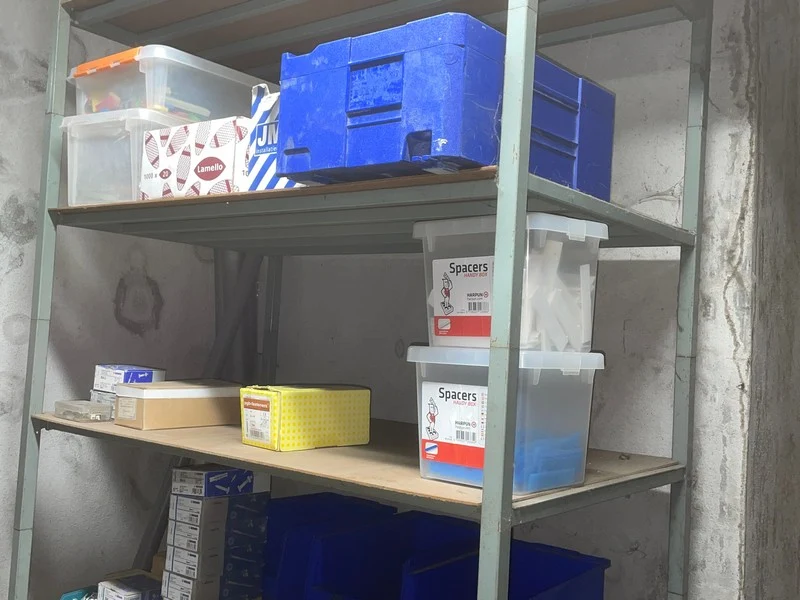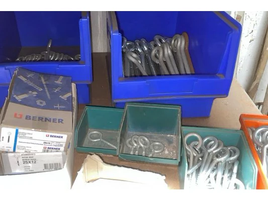 Ongeveer 15 dozendiverse schroefogen, + glasblokjes, schroefdulm, lamellen