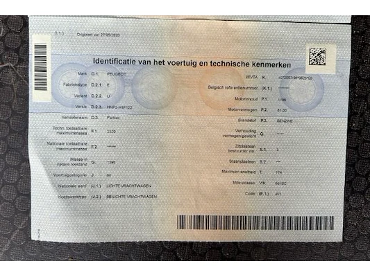 Peugeot Partner, lichte vracht, TTM 232 kg, motorinhoud 1199 cm³, vermogen 81 kw, milieuklasse euro 6d-ISC, 1ste inschrij...