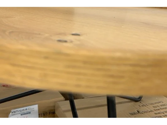 Zwart metalen onderstel met houten blad, 90 x 84.4 x 38 cm