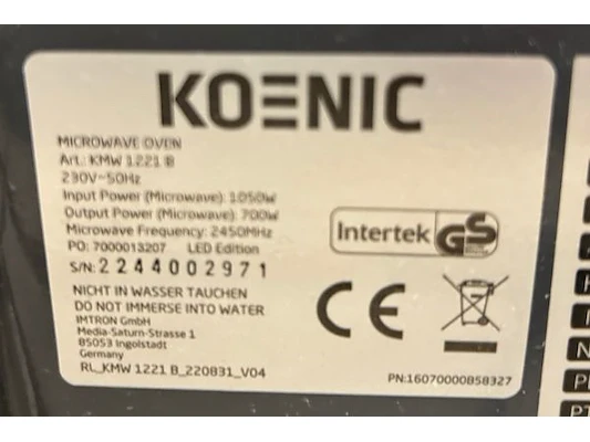 Art KMW1221B, 230V, 43 x 30 x 25 cm hoog