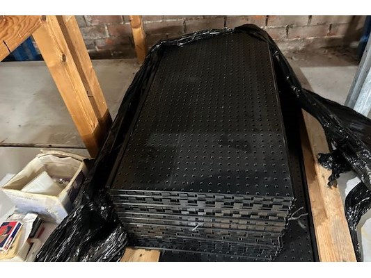 Bestaande uit 18 staanders 115 x 52 cm, 18 verhoogstukken voor staanders 107 cm, 15 l...