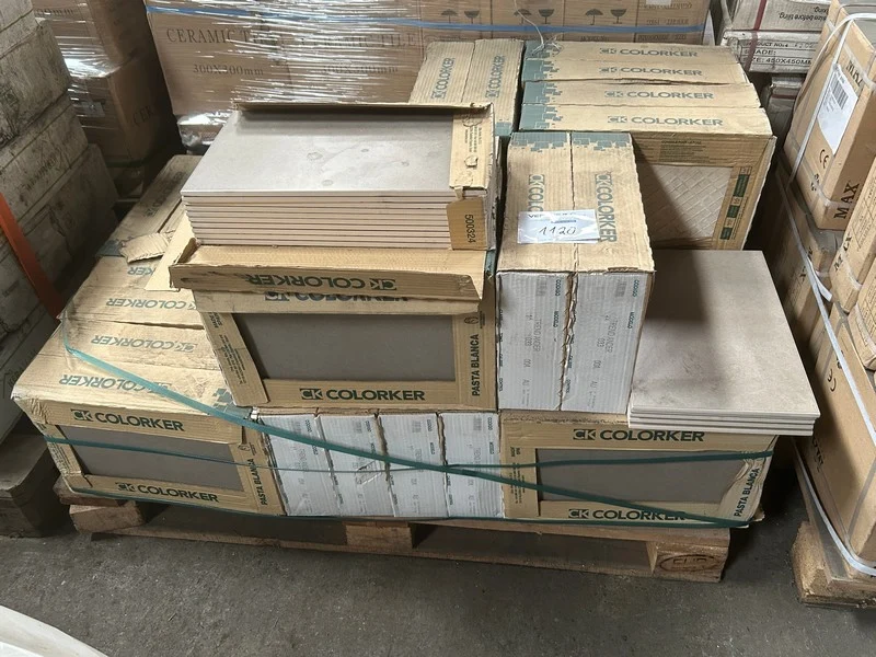 Tegels, 34 dozen, ongeveer 34m², donkerbeige kleur, 25 x 40 cm, 10 stuks/doos, 1 doos = 1m² 34 M²