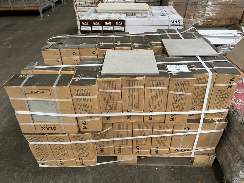 49 dozen, ongeveer 44m², lichtgrijze kleur, 30 x 30 cm, 11 stuks/doos, 1 doos = 0.99m² 44 M²