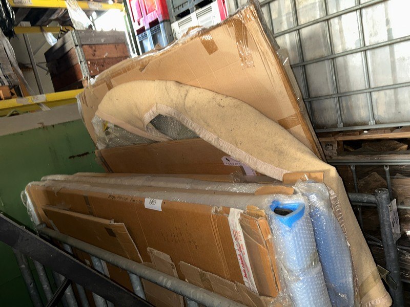 8 diverse tafelbladen, diverse soorten: hout, glas, keramiek, afmeting ongeveer 200 x 100 cm, zwart/wit, grijs, excl korf