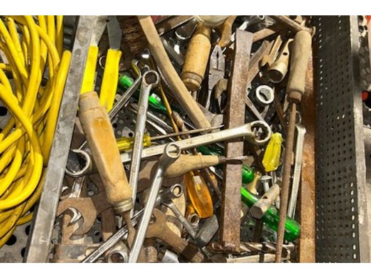 Zoals drukspuit, kettingzaag, schuurmachine, zeilen, vuilnisbak, tuinmateriaal, ...