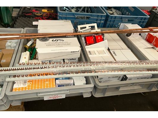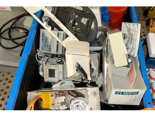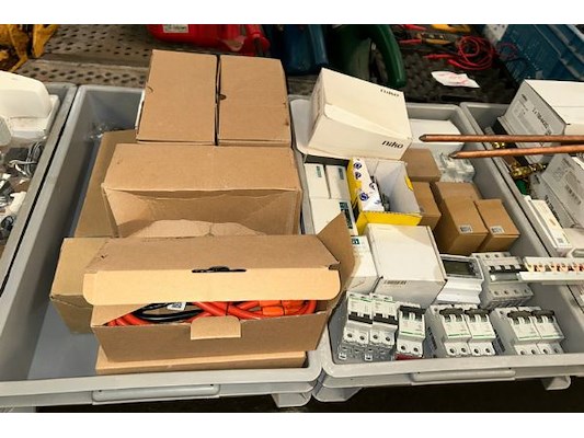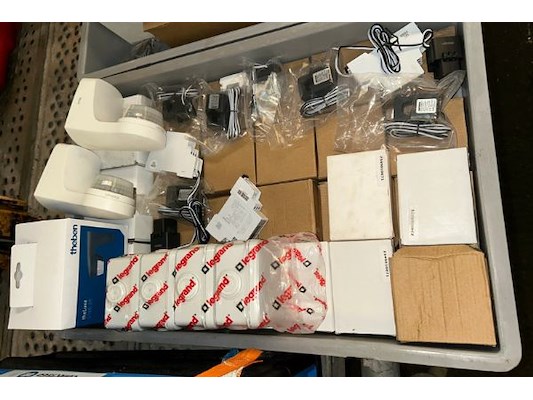 Ongeveer 50 doosjes waaronder bewegingsdetectoren, inbouwschakelaar, stroomonderbreker, externa...