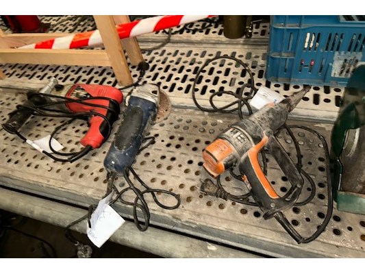 Diverse machines waaronder nagelpistool, boormachine, slijpsteen, haakse slijper, schuurmachine, excl schraag