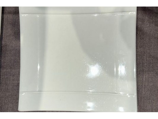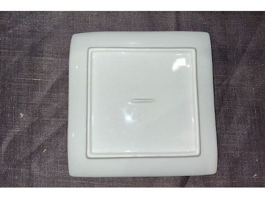 Ongeveer 45 witte bordjes, 16 x 16 cm, + bak, zit ook in lot 512