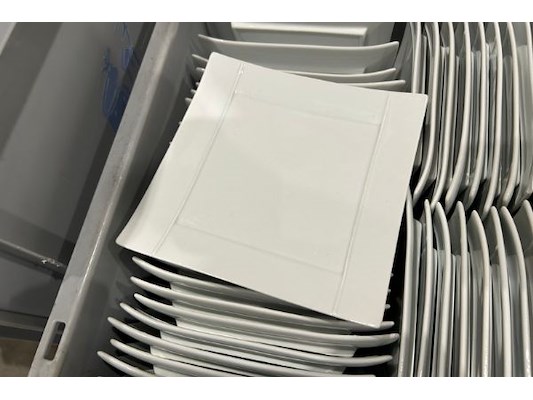 : ongeveer 225 witte schaaltjes, 11.5 x 11.5 cm + bak, (als deze bieding groter is dan de som...