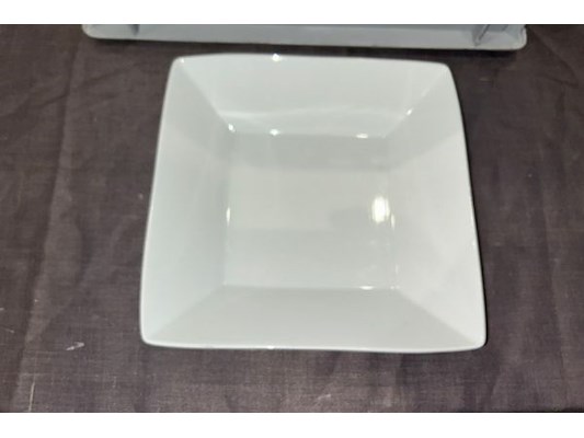 Ongeveer 75 witte schalen, 22 x 22 cm + bak, zit ook in lot 520