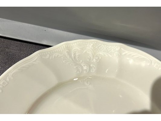 Ongeveer 100 beige borden, 19.5 cm diameter, Bernadette stempel onderaan, +bak, zit ook in lot 527