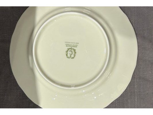 Ongeveer 150 beige borden, 19.5 cm diameter, Bernadette stempel onderaan, +bak, zit ook in lot 527