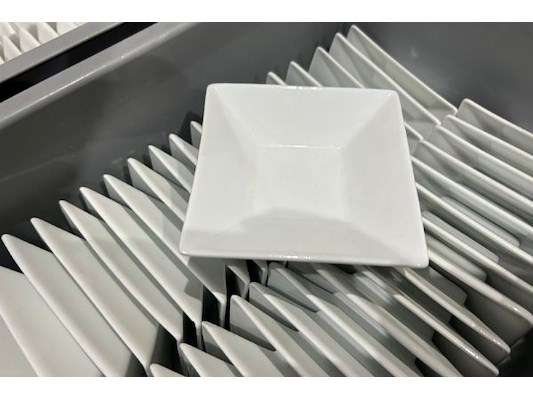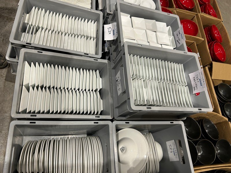 : ongeveer 280 witte schaaltjes, ongeveer 11.5 x 11.5 cm, + bak(als deze bieding groter is da...