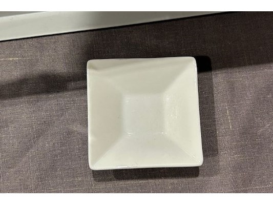 Ongeveer 180 witte schaaltjes, 7.5 x 8 cm, + bak, zit ook in lot 536