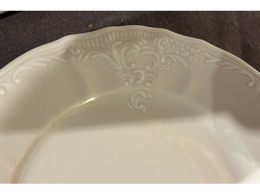 Ongeveer 80 beige bordjes, 17 cm diameter, stempel Bernadohe, zit ook in lot 545