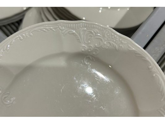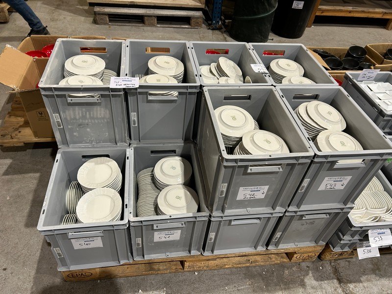 : ongeveer 1120 beige bordjes, 17 cm diameter, stempel Bernadohe, (als deze bieding groter is...