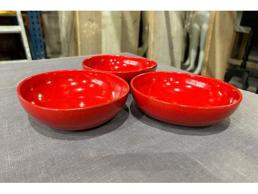 Ongeveer 60 rode kommen, 17 cm diameter, 5 cm hoog, insitu , zit ook in lot 561