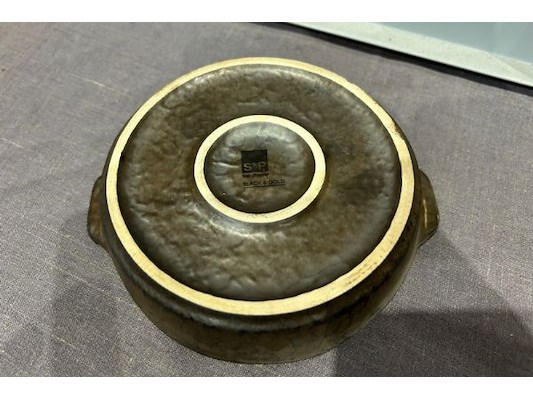 Ongeveer 17 bruine schalen, 16 cm diameter, 4 cm hoog, + bak
