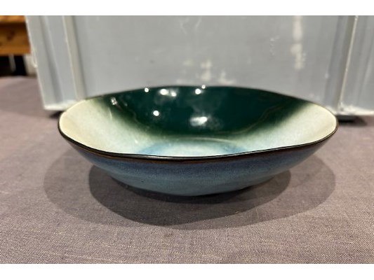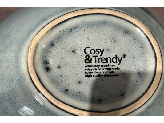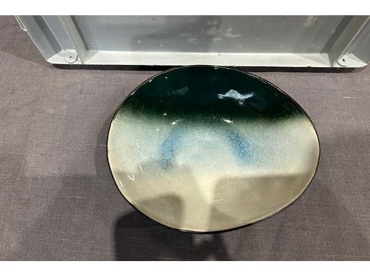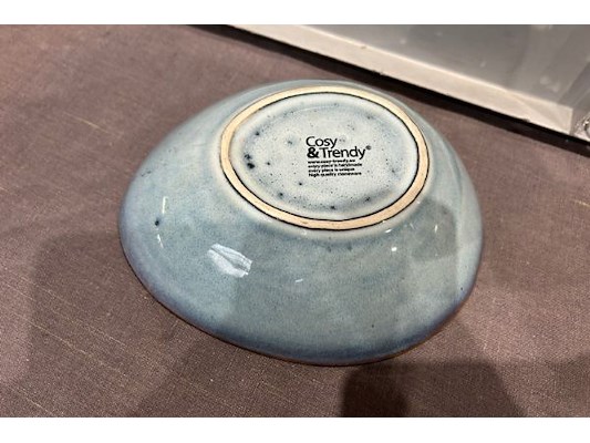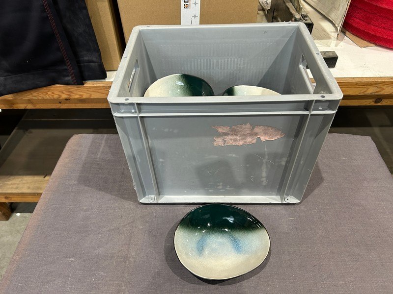 Ongeveer 28 schalen, diverse kleuren, 19..5 x 17 x 5 cm hoog, + bak