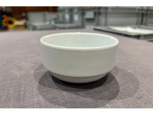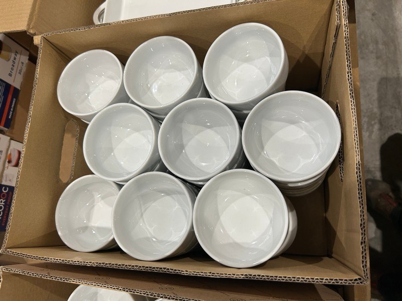 Ongeveer 53 witte kommetjes, 10.5 cm diameter, 5.5 cm hoog