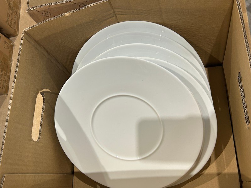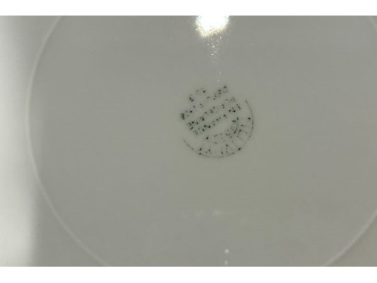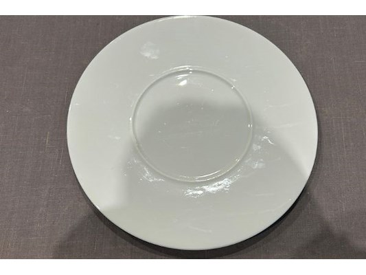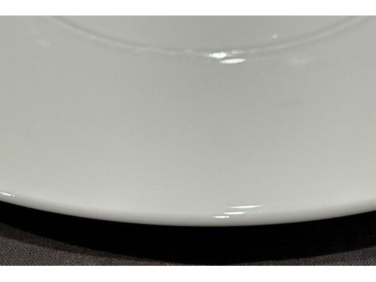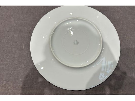 Ongeveer 12 witte borden, 30 cm diameter, met stempel aan onderzijde, zit ook in lot 603